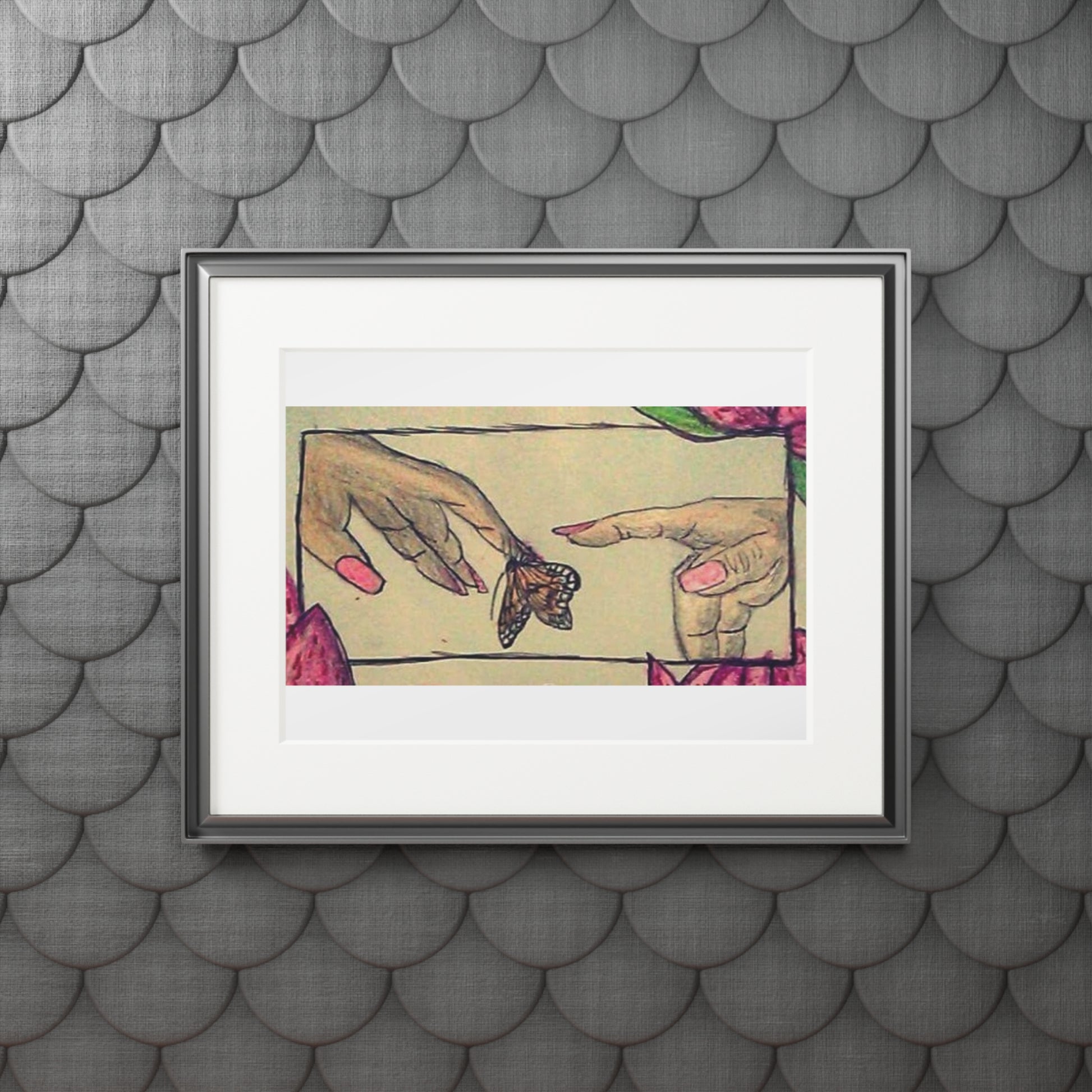 Fine Art Print — Creation of Eve Passepartout Print (Hands & Butterfly)